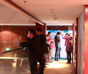 工作人員在認(rèn)真審核參會(huì)人員并分發(fā)參會(huì)資料