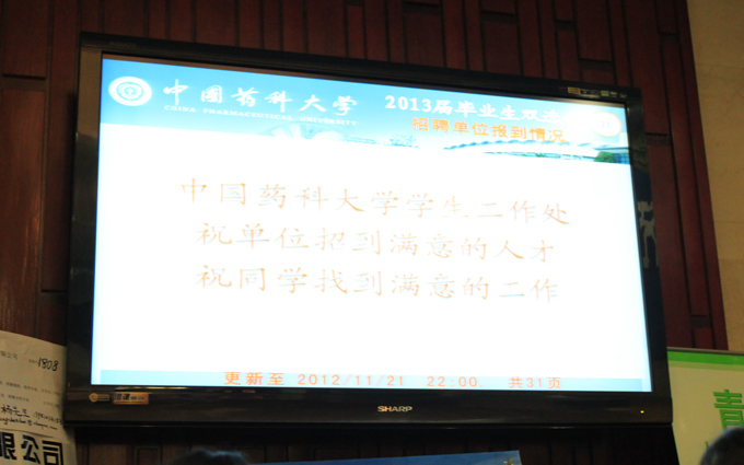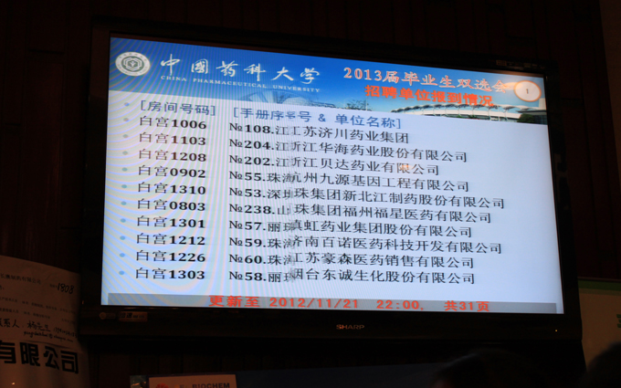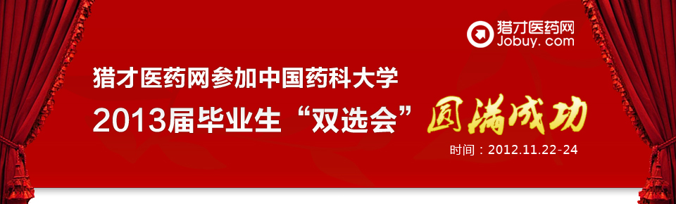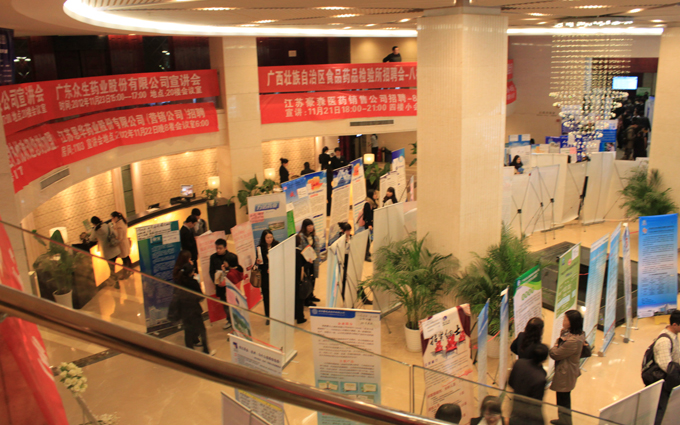 11月22日-24日,中國藥科大學2013年應屆畢業(yè)生“雙選會”在南京白宮大酒店舉行,獵才醫(yī)藥網(wǎng)參加了此次“雙選會”并滿載而歸。 中國藥科大學是一所歷史悠久,特色鮮明、學風優(yōu)良、在藥學界享有盛譽的國家“211工程”重點建設(shè)的大學。2013年,該校將有1022名研究生,2680名本科生,290名??粕瓿蓪W業(yè),走向工作崗位。大量的優(yōu)質(zhì)生源吸引了全國各地300多家企業(yè)前往招聘。獵才醫(yī)藥網(wǎng)對參加此次“雙選會”特別重視,獵才醫(yī)藥網(wǎng)作為中國百強制藥企業(yè)招聘首選的網(wǎng)絡平臺,期待幫助醫(yī)藥行業(yè)未來的菁英們提供一個絕佳的職業(yè)平臺。 |