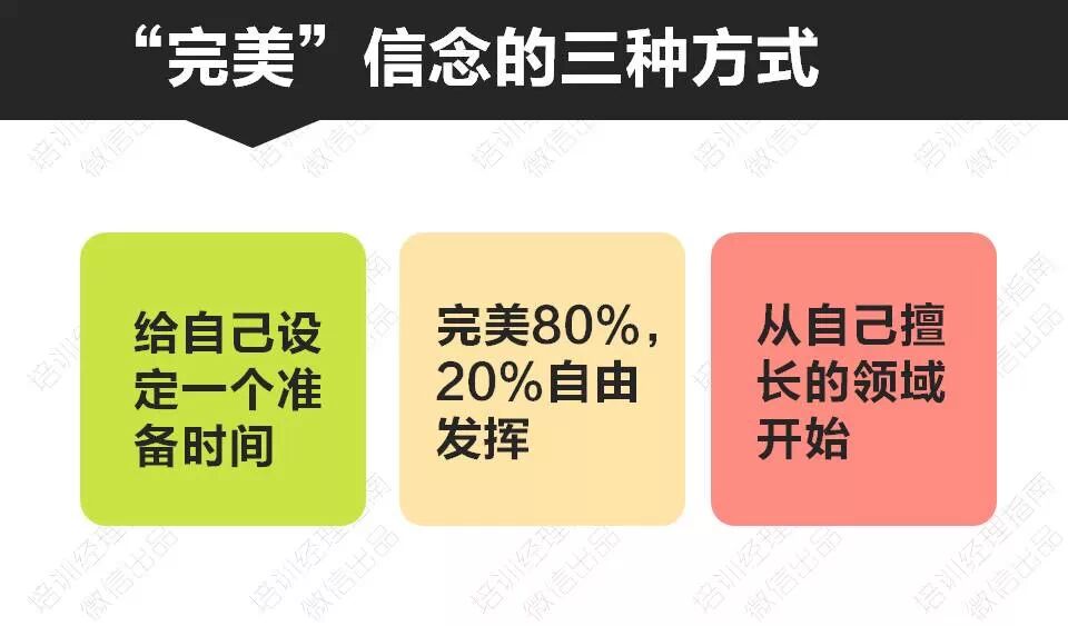 原因分析:這是一個(gè)完美主義信念,它的形成和我們過(guò)去的經(jīng)歷有關(guān)。我們上學(xué)讀書(shū)時(shí)只有什么都懂才考得好,所以逐漸我們認(rèn)為做一件事要各方面都準(zhǔn)備的特別完美,才能去做。特別是培訓(xùn)師,我們需要對(duì)我們的學(xué)員負(fù)責(zé),所以要具備完美的信念。