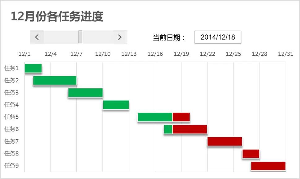1 大名鼎鼎的甘特圖,不過(guò)這并不是用專業(yè)項(xiàng)目管理的軟件做出來(lái)的,完全是在Excel中實(shí)現(xiàn),掌握了這個(gè)方法,你就可以使用Excel進(jìn)行項(xiàng)目進(jìn)度的跟蹤管理。