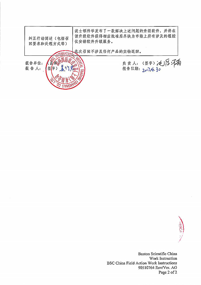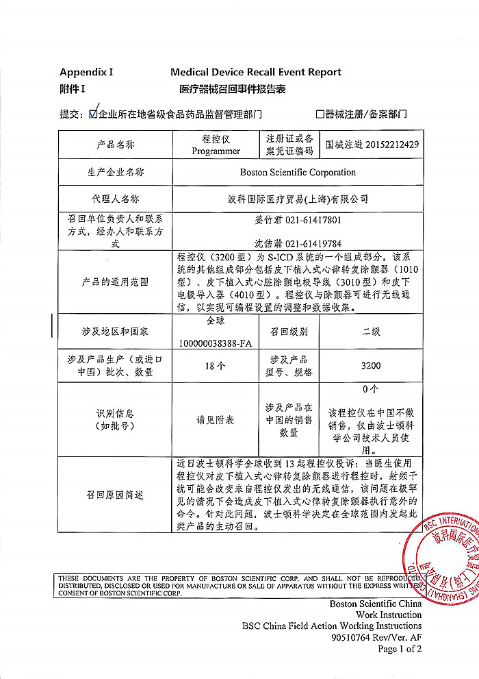 波科國際醫(yī)療貿(mào)(上海)有限公司對(duì)程控儀主動(dòng)召回