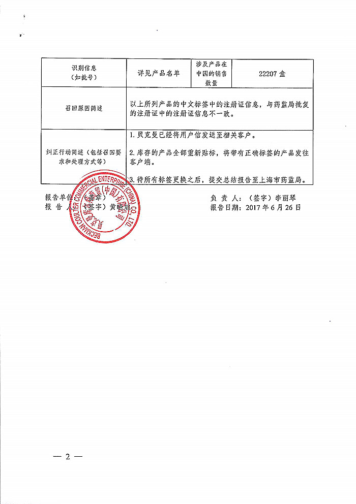貝克曼庫爾特商貿(mào)(中國)有限公司報(bào)告,涉及產(chǎn)品中文標(biāo)簽中注冊(cè)證信息錯(cuò)誤。貝克曼庫爾特商貿(mào)(中國)有限公司對(duì)人促甲狀腺激素校準(zhǔn)品,鐵蛋白校準(zhǔn)品,促卵泡生成激素校準(zhǔn)品,甲狀腺球蛋白抗體測(cè)定試劑盒(化學(xué)發(fā)光法),血細(xì)胞分析用染色液(注冊(cè)號(hào):國械注進(jìn)20162404039號(hào),國械注進(jìn)20162404040號(hào),國械注進(jìn)20162404047號(hào),國械注進(jìn)20162404041號(hào),國械備20161505)主動(dòng)召回。召回級(jí)別為三級(jí)。涉及產(chǎn)品的型號(hào)、規(guī)格及批次等詳細(xì)信息見《醫(yī)療器械召回事件報(bào)告表》。
