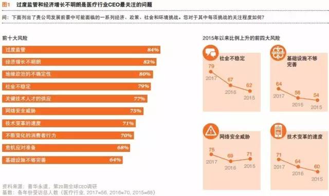 普華永道日前發(fā)布第20期全球CEO年度調(diào)研醫(yī)療行業(yè)主要發(fā)現(xiàn)。本次調(diào)研采訪了來自27個(gè)國(guó)家的56位醫(yī)療行業(yè)CEO,深入探討了包括全球化、技術(shù)創(chuàng)新、人才及信任等2017年熱點(diǎn)話題的看法。