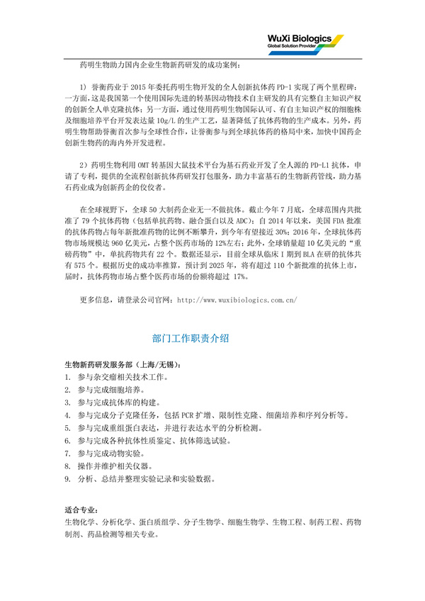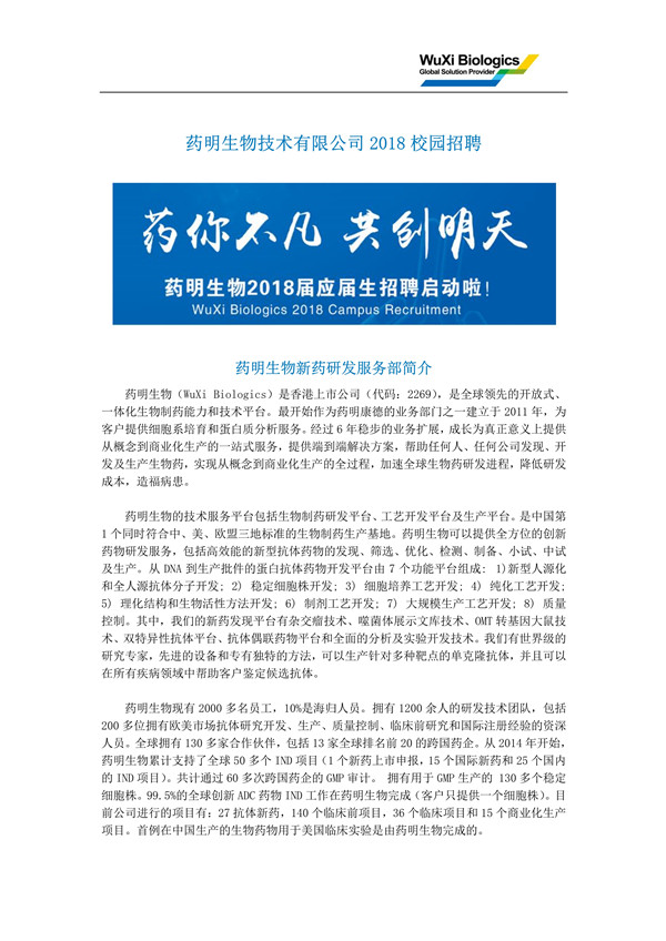 | 【藥明生物技術(shù)有限公司2018校園招聘】 |