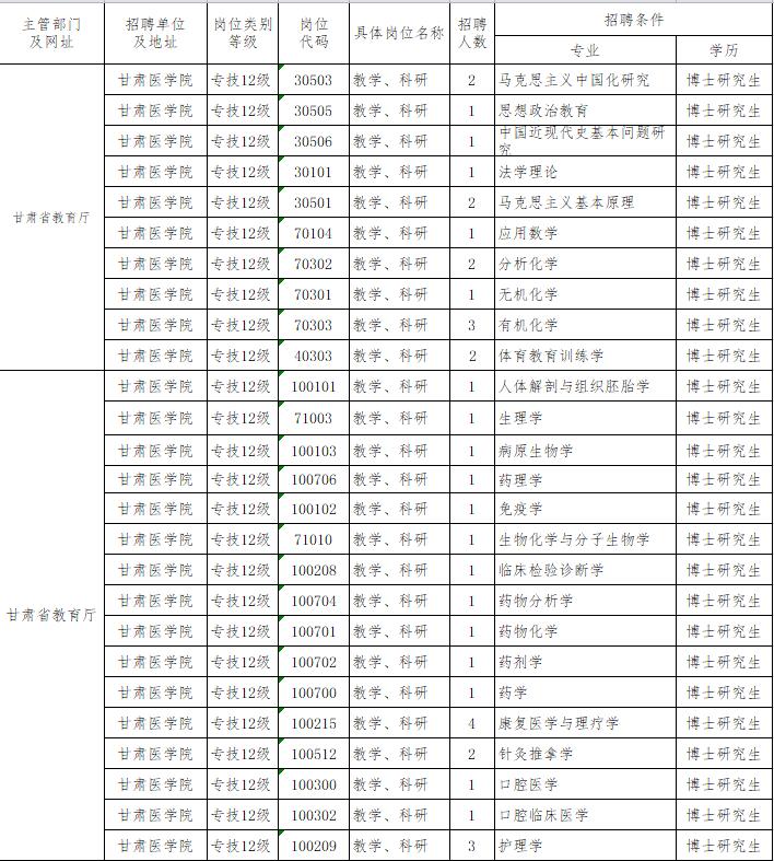 甘肅醫(yī)學(xué)院公開招聘博士專業(yè)技術(shù)人員公告