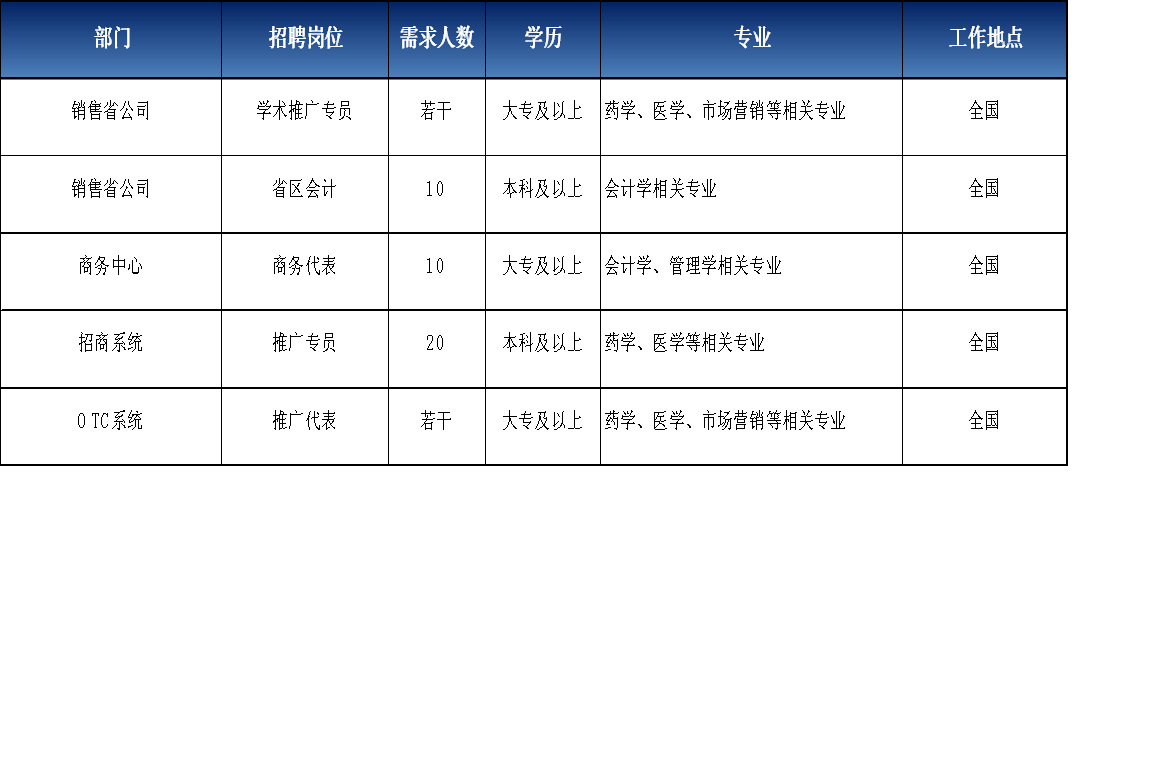 藥學、醫(yī)學、市場營銷等相關專業(yè) |