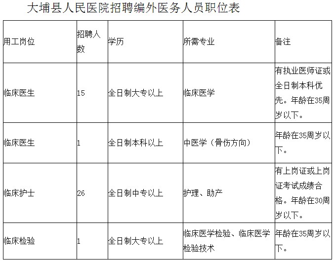 1.大埔縣人民醫(yī)院2019年公開招聘編外醫(yī)務(wù)人員職位表