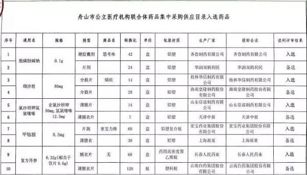 近日,浙江省舟山醫(yī)院官網(wǎng)發(fā)布《舟山市公立醫(yī)療機(jī)構(gòu)聯(lián)合體藥品集中采購供應(yīng)目錄中選和備選藥品及集中采購目錄清單剔除藥品公示》。