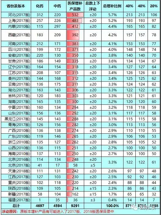 據(jù)風(fēng)云藥談統(tǒng)計(jì),在2017版醫(yī)保目錄出臺后,大部分省市都積極下發(fā)了地方醫(yī)保目錄,其中增補(bǔ)的中藥、西藥數(shù)量均不少,各省平均增補(bǔ)總數(shù)可達(dá)到293個(gè)/省。