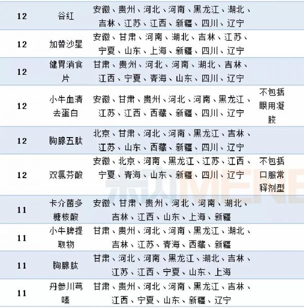 米內(nèi)網(wǎng)數(shù)據(jù)顯示,共有46個(gè)品種是增補(bǔ)頻率最高的,它們在2017版醫(yī)保目錄調(diào)整時(shí)成功進(jìn)入了11個(gè)或以上省份的省醫(yī)保增補(bǔ)目錄。
