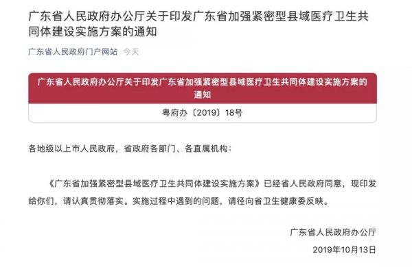 10月13日,廣東省人民政府印發(fā)《廣東省加強(qiáng)緊密型縣域醫(yī)療衛(wèi)生共同體建設(shè)實(shí)施方案》。