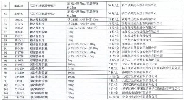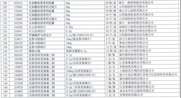 需自主申報降價的原研藥、參比制劑和通過國家質(zhì)量與療效一致性評價仿制藥清單