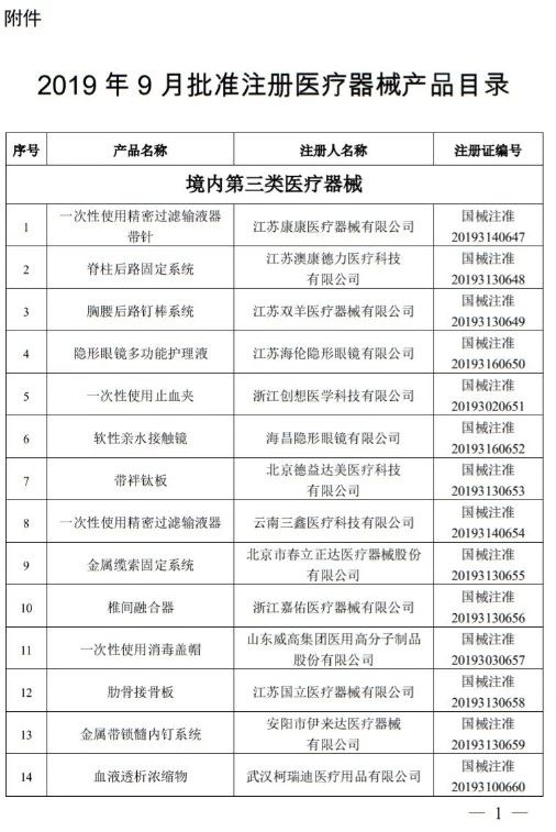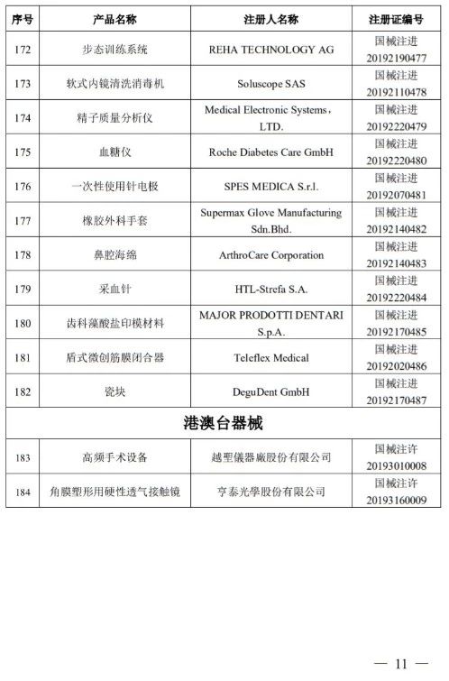 10月31日,國家藥監(jiān)局發(fā)布《國家藥監(jiān)局關于批準注冊184個醫(yī)療器械產(chǎn)品公告(2019年第85號)》。