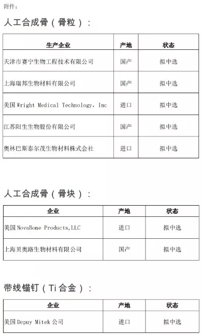 其中賴特醫(yī)療擬中選人工合成骨(顆粒),而賴特醫(yī)療即將成為骨科巨頭史賽克旗下公司。