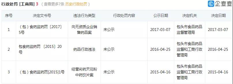 共罰沒款合計為46252元。醫(yī)藥查詢發(fā)現(xiàn),包頭市天芮醫(yī)藥有限責任公司已多次銷售劣藥被罰。6月14日,內(nèi)蒙古藥監(jiān)局公布的行政處罰信息表中,包頭市天芮醫(yī)藥有限責任公司銷售劣藥批號為180402的“藻酸雙酯鈉注射液”被罰。企查查數(shù)據(jù)顯示,該藥企15、16、17年分別有一次因銷售劣藥被罰。