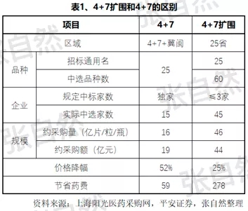所謂“4+7”擴(kuò)圍,即將在4+7城市招標(biāo)的25個(gè)品種,拿到4+7及福建、河北之外的全國(guó)剩余25個(gè)省進(jìn)行招標(biāo)。