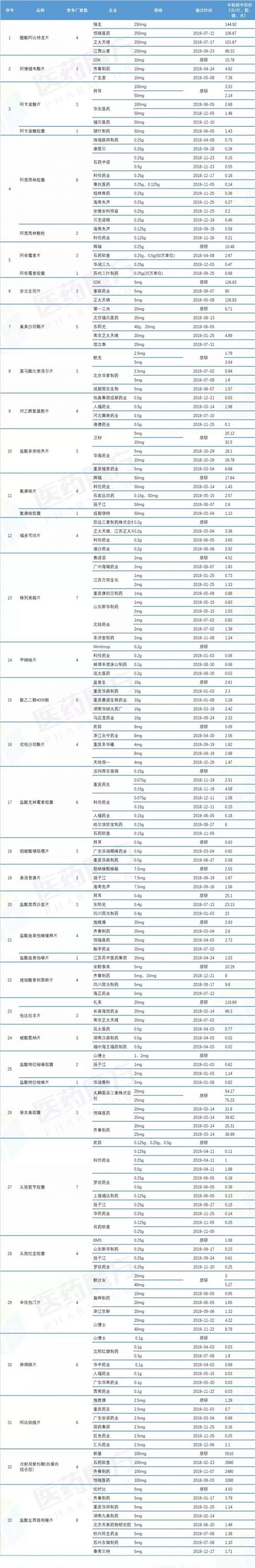采購(gòu)文件規(guī)定,2020年1月17日(星期五)上午8點(diǎn)開始接收申報(bào)材料,申報(bào)日期前,可能有些品種還會(huì)有新的廠家通過一致性評(píng)價(jià)。