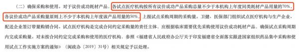 通知指出,對于議價成功耗材產(chǎn)品,各試點(diǎn)醫(yī)療機(jī)構(gòu)按所有議價成功產(chǎn)品采購總量不少于本機(jī)構(gòu)上年度同類耗材產(chǎn)品用量的70%,各議價成功產(chǎn)品采購量原則上不少于本機(jī)構(gòu)上年度該產(chǎn)品用量的50%,上報試點(diǎn)采購周期的采購量。