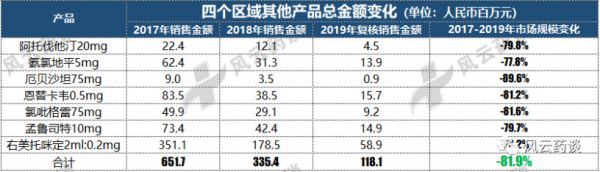 風(fēng)云藥談數(shù)據(jù)顯示,原研產(chǎn)品市場份額在國采機(jī)制下全線下降,2017年--2019年數(shù)據(jù)對比下降幅度為60%以上,終端醫(yī)院市場下降幅度顯著。