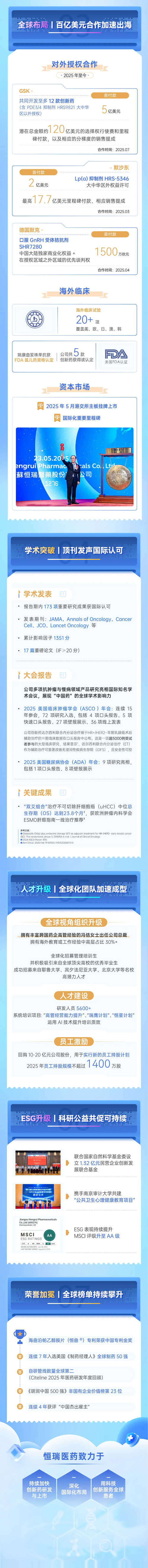 本次ESMO大會,恒瑞醫(yī)藥共有11項研究成果入選口頭報告和簡短口頭報告,不僅彰顯了公司在創(chuàng)新藥物研發(fā)方面的深厚積累與領(lǐng)先實力,也是中國醫(yī)藥創(chuàng)新贏得國際認(rèn)可的有力印證。