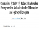 • FDA撤銷氯喹/羥氯喹治療COVID-19的緊急使用授權